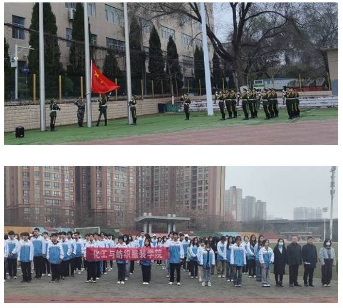 3月18日清晨,化工与纺织服装学院在操场举行以“发扬雷锋精神 做有志好青年”为主题的升旗仪式。学院党总支书记杨修国、院长刘迪、辅导员及学生代表参加升旗仪式。
