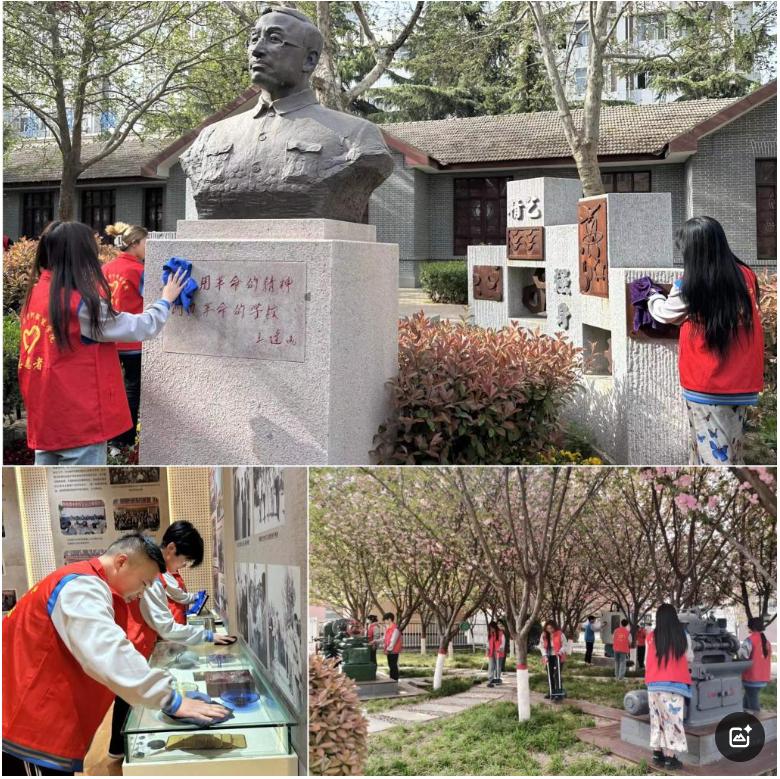 扫帚与落叶共舞,擦布让雕塑闪耀发光。清扫绿化带、整理校友捐赠文物展区,通过老教工口述校史,强化学生爱校荣校意识。清理机床文化展陈设备、规整工具模型,邀请劳模工匠示范操作机床,感悟“工匠精神”内涵。