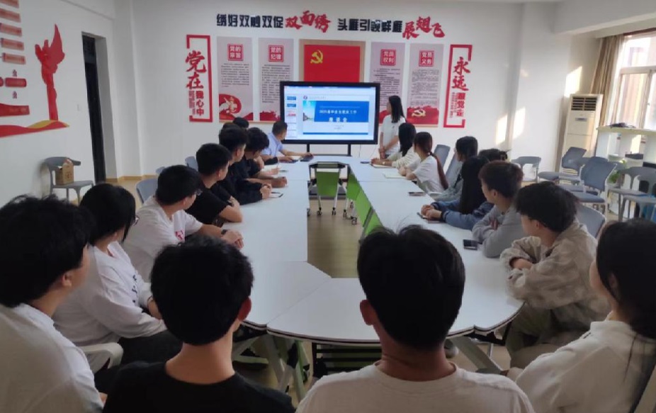 会上,刘迪院长强调学生们要做好就业前的各项准备,分析专业背景和行业背景,树立正确的就业观。随后,杨修国书记通报了我院2024届学生的就业情况,分析了2025届毕业生就业形势,指出了学生就业工作存在的问题,教育引导学生认清就业形势,保持良好的就业心态,主动出击,抓住当前就业的黄金期,积极参加学院组织的招聘会。