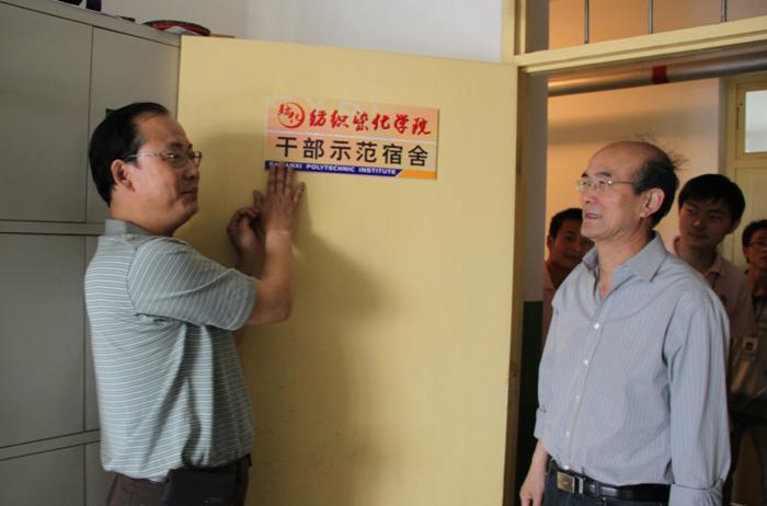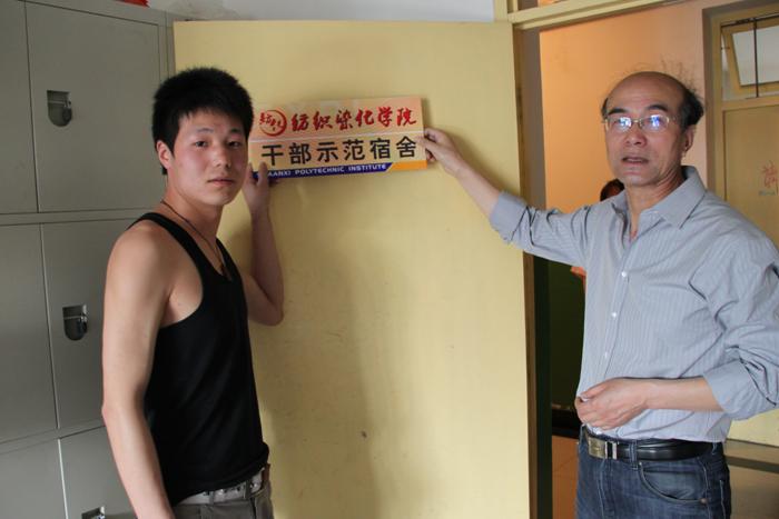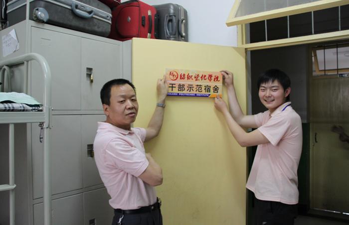 为落实学院《“党旗领航”工程教育系列活动》,4月26日下午,纺织染化学院党总支、学工办对明善园、明伦园所属学生宿舍举行了“学生党员示范宿舍”、“学生干部示范宿舍”、“学生示范宿舍”现场验收挂牌活动。全体辅导员、班主任和学生干部参加了活动。