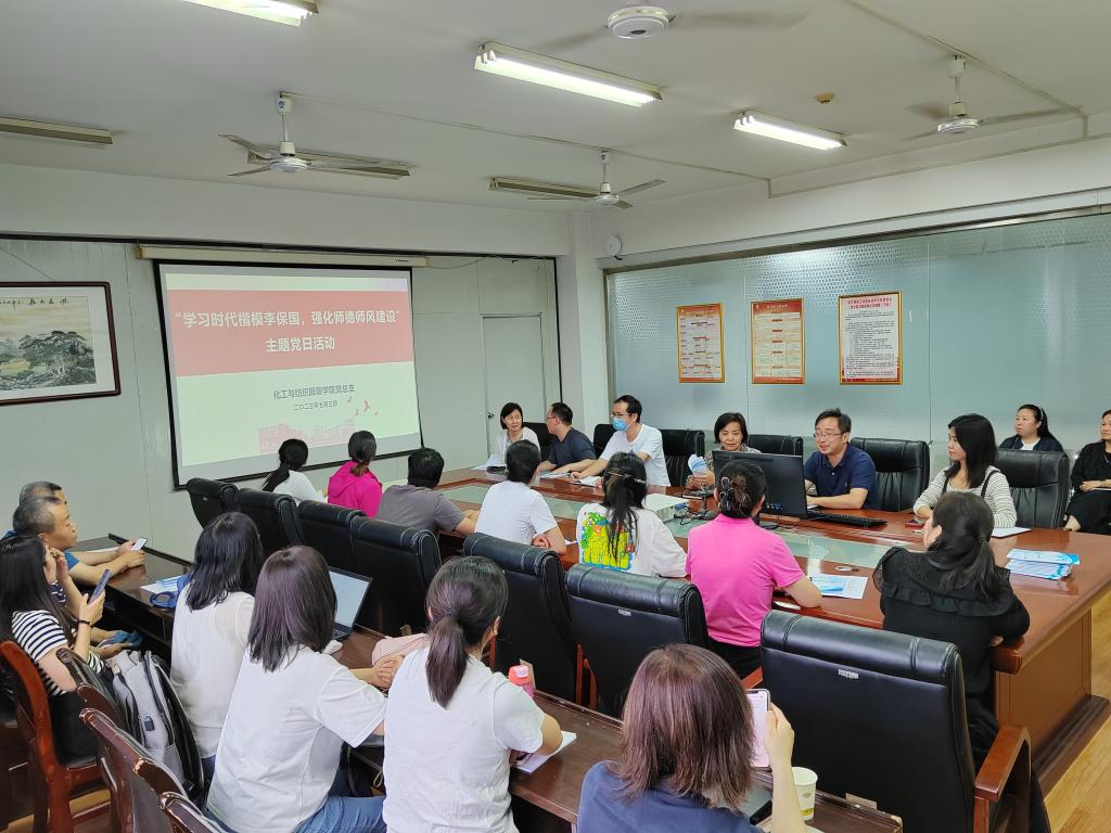 为了强化师德师风建设,化工与纺织服装学院于7月3日下午,在崇文南楼811举行了“学习时代楷模李保国,强化师德师风建设”主题党日活动,全体教师参加了此次活动。