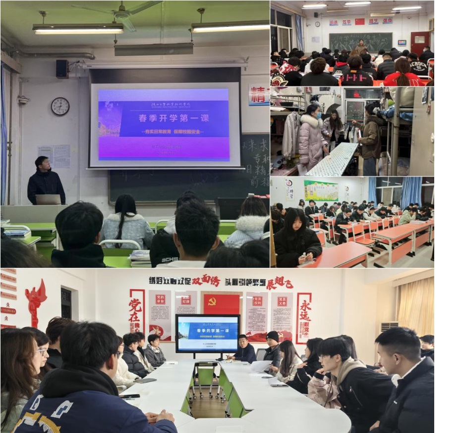 主题班会筑牢思想根基,激发班级新活力。学生工作办公室高度重视学生思想教育工作,办公室主任曹淼组织全体班主任开展以“开学第一课”为主题的班级班会。各班班主任围绕意识形态工作、安全教育、消防、防诈骗、学风建设等内容开展形式多样的主题班会,提醒同学们调整好状态,迎接新学期、树立新目标,向同学们重申校纪校规,要求同学们上课要做到不迟到不早退,宿舍内按时就寝,严格执行请假手续,并提醒同学们注意预防网络电信诈骗、不随意散播舆论,提高交通安全意识、宿舍消防安全意识等,助力学生以积极阳光的心态开启新学期的学习生活。同时结合班级实际情况,通过分享假期见闻、讨论学习计划、制定班级公约等形式,引导学生树立正确的价值观,明确学习目标,增强集体荣誉感。班会现场气氛热烈,学生们积极参与,展现了新学期昂扬向上的精神风貌。此次主题班会不仅为新学期的学习生活奠定了坚实的思想基础,也进一步增强了班级凝聚力和向心力。