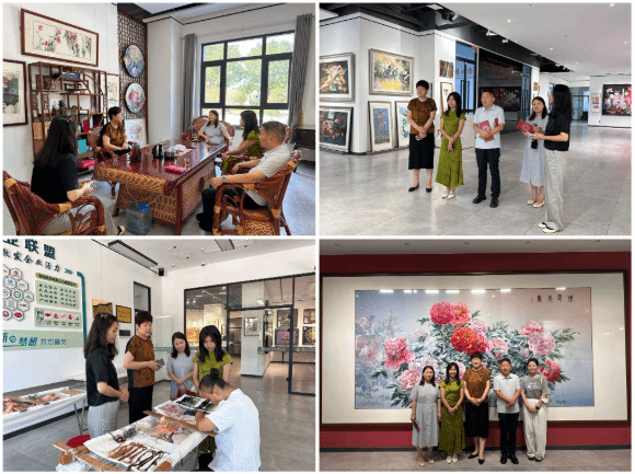 最后,在计清的带领下,一行人参观了馨绣展馆。展馆内精美的刺绣作品让大家近距离感受到了非遗文化的独特魅力和深厚底蕴,也为双方后续的合作提供了更多思路和灵感。
