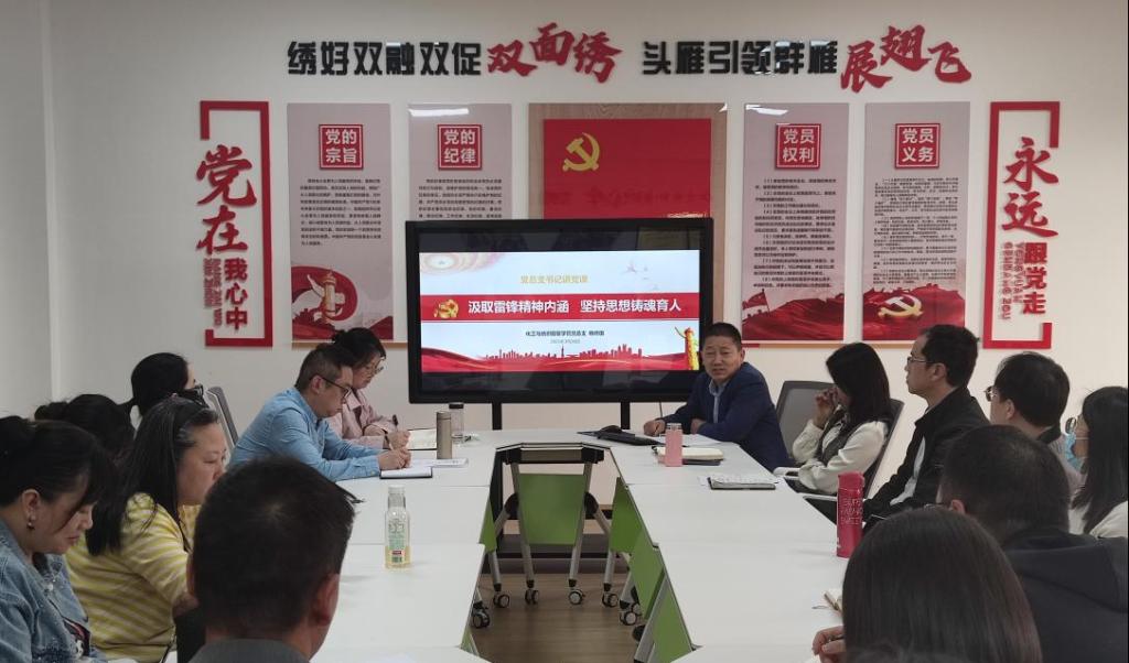 为弘扬雷锋精神,发挥教师党员模范带头作用,坚持立德树人根本任务,3月26日下午,化工与纺织服装学院党总支书记杨修国以《汲取雷锋精神内涵 坚持思想铸魂育人》为题,为全体党员教师带来了一场理论与实践案例并重的主题党课。